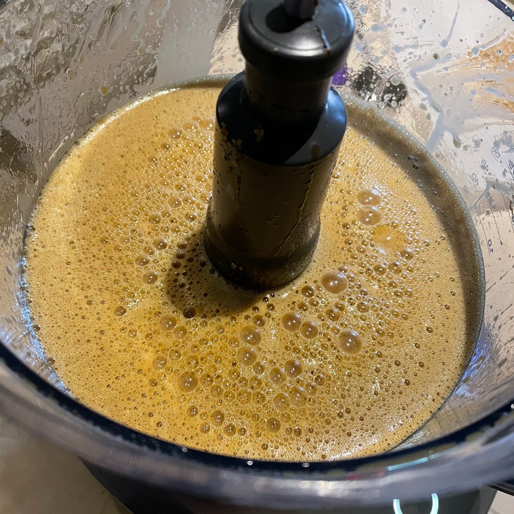In the bowl of a food processor fitted with the “s” blade, combine the egg, milk, oil, sugar, and molasses.