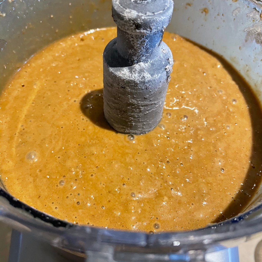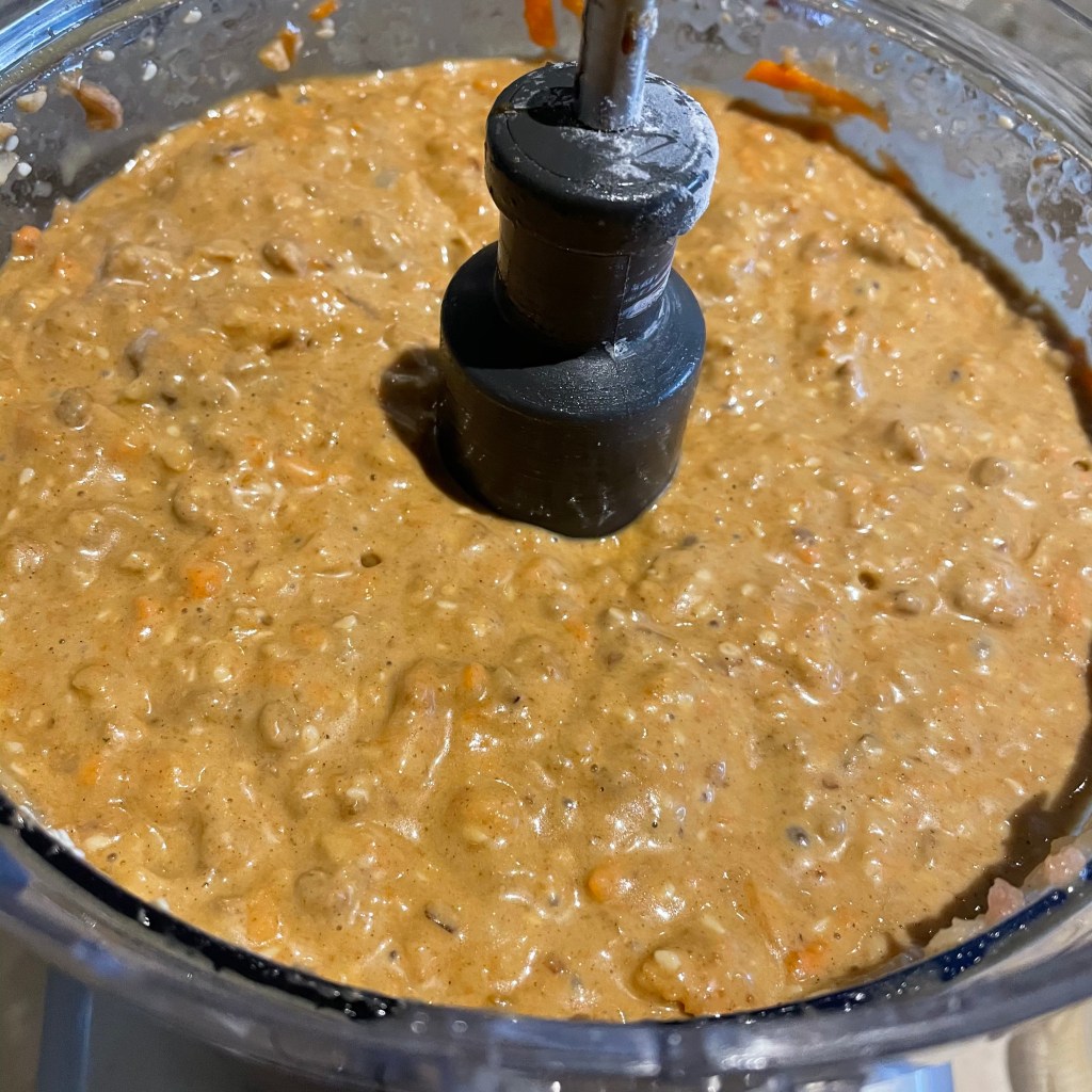 Add the flour mixture and pulse until just combined. Fold in the apple, carrots, dates, walnuts, and sesame seed. Pour the batter into the prepared pan.