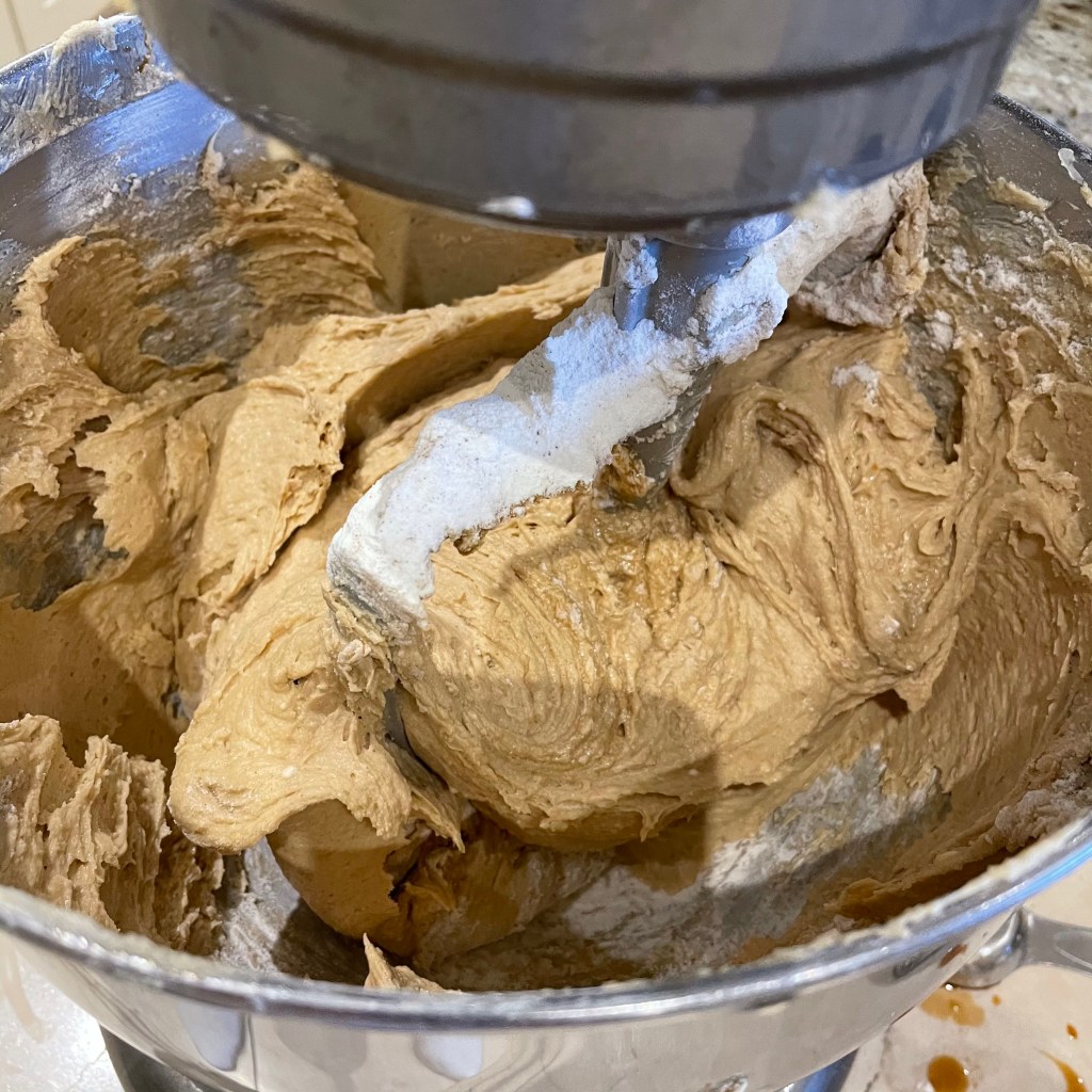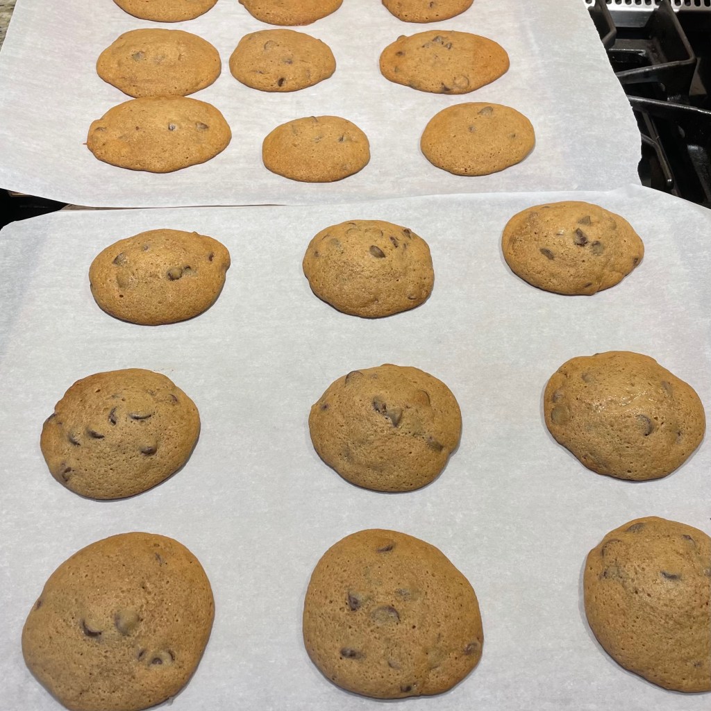 Use an ice cream scoop to form mounds of dough and place 9 cookies on each baking sheet allowing room to spread.