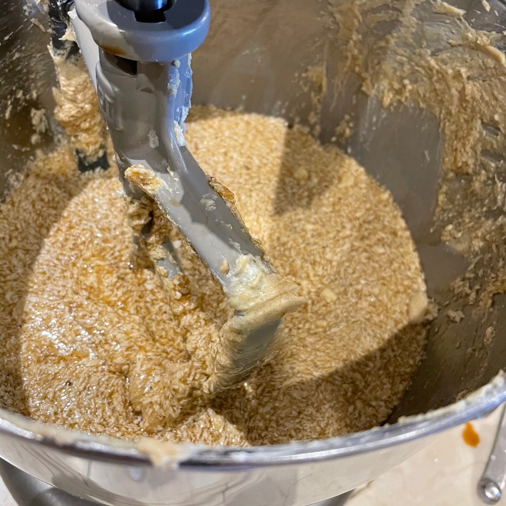 Add the eggs, one at a time, scraping down the bowl as necessary.