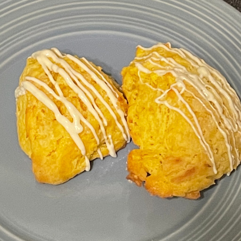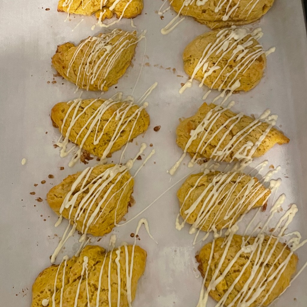 Melt chocolate in microwave and drizzle over scones after they’ve cooled. If you’d like you can top with crushed candy cane.